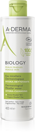 Описание A-Derma BiologyВеганскийБиоНатуральныйБез ароматизатораКонсистенцияводаТип кожидля всех типов кожиЭффектУвлажнение, Регуляция избытка кожного сала, Успокаивание, ОчищениеКогда использовать днем и ночьюАктивные ингредиентыалоэ вера, экстракт овсаНе содержит без ароматизаторовМицеллярная вода A-Derma Biology гарантирует тщательное удаление макияжа всего за несколько минут. В то же время удаляет с кожи повседневные загрязнения и омертвевшие клетки. Особенности: предотвращает чрезмерное высыхание кожи, удаляет даже самый стойкий макияж, подготавливает кожу к нанесению других процедур, может также использоваться для чувствительной кожи. Состав: содержит не менее 99 % компонентов натурального происхождения. Способ применения: