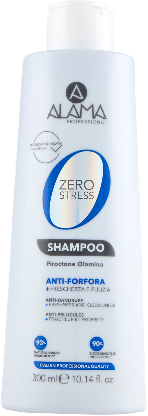 Шампунь против перхоти для комбинированной кожи головы. Содержит 93% натуральных ингредиентов. Дерматологически протестировано. Очищает, освежает и регулирует физиологический клеточный метаболизм. Содержит пироктон оламин. Шампунь против перхоти Zero Stress из линии Alama Professional специально разработан для кожи головы с жирной или сухой шелушащейся кожей, независимо от наличия зуда. Он очищает, освежает и регулирует физиологический клеточный метаболизм. Также успокаивает раздражение кожи, обеспечивая немедленное облегчение дискомфорта и зуда. При регулярном использовании контролирует и предотвращает шелушение благодаря очищающему и дезинфицирующему действию пироктона оламина, освежает кожу головы, делает волосы легкими и тонизированными. Код товара: 2167470 GTIN: 8008277361642