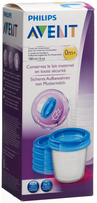 Avent Philips Via Aufbewahrungsbecher 180ml 5 Becher, 5 Deckel