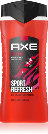 Описание Axe Recharge Arctic Mint & Cool SpicesТип кожидля всех типов кожиГель для душа Axe Recharge Arctic Mint & Cool Spices превращает ежедневную гигиену в уникальное и освежающее занятие.Особенности:мягко очищает кожу всего тела после применения, дарит ощущение свежести и энергии, смягчает и гидраты можно использовать для тела и волос. Способ применения: