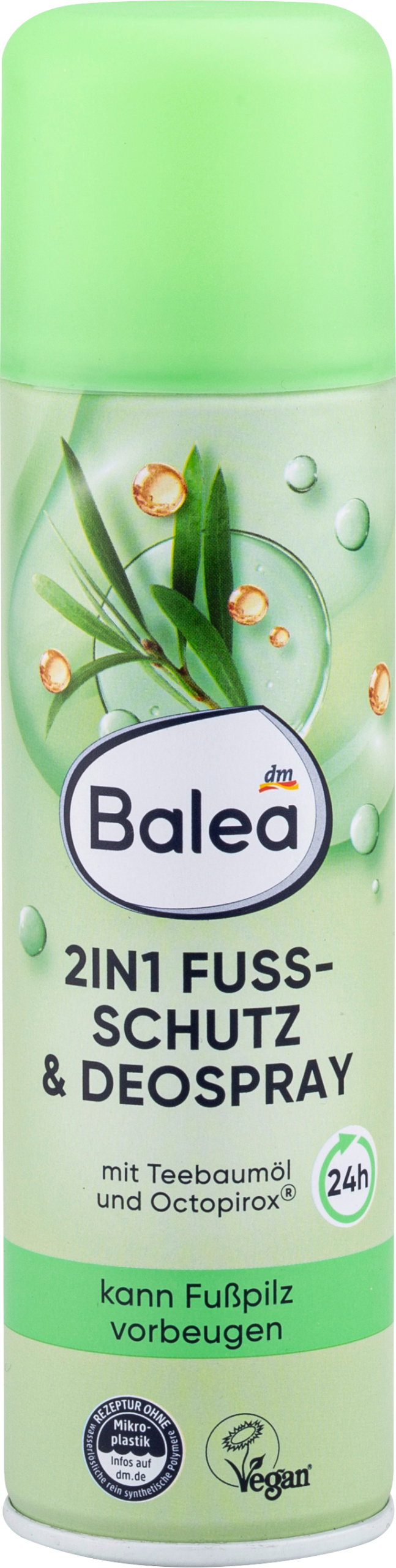 Противогрибковый дезодорант для ног. Защищает и устраняет неприятные запахи. С маслом чайного дерева и Октопироксом®. Антибактериальная формула. Не содержит алюминия. Хотите эффективную защиту для своих ног от неприятных запахов и грибка? Спрей-дезодорант для ног 2-в-1 от Balea — это то, что вам нужно! При регулярном использовании этот дезодорант предотвращает раздражение и грибковые инфекции. Кроме того, его формула, обогащенная маслом чайного дерева и антибактериальным Октопироксом®, защищает от неприятных запахов до 24 часов. Сохраняйте свежесть и ухоженность ваших ног, особенно в жаркие дни: Balea позаботится о вас с головы до ног! Код товара dm: 1330040 GTIN: 4066447438413