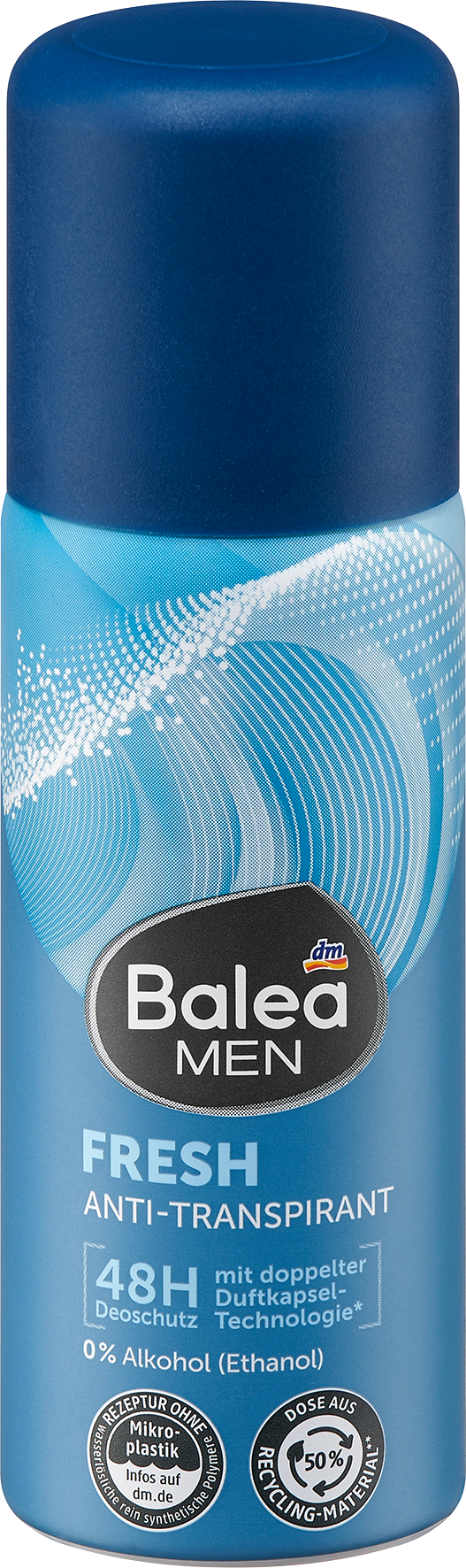 Антиперспирант-дезодорант. Длительная защита от неприятных запахов. Активируется потом, движением и теплом тела. С ментолом, маслом мяты и розмарином. В удобном дорожном формате. Антиперспирант-дезодорант-спрей Balea MEN’s Fresh защищает от пота и неприятных запахов до 48 часов! Больше не нужно бояться жары и потоотделения во время физической активности: частицы этого свежего дезодоранта активируются по мере необходимости, обеспечивая сверхсильную защиту и длительное ощущение сухости на коже. Кроме того, его веганская формула с ментолом, маслом мяты и розмарином обеспечивает дополнительную свежесть, особенно в самые важные моменты дня. Попробуйте его в удобном дорожном формате для ощущения защиты и свежести всегда под рукой: закажите дезодорант Balea MEN’s Fresh прямо сейчас! Код товара dm: 1692717 GTIN: 4066447600117