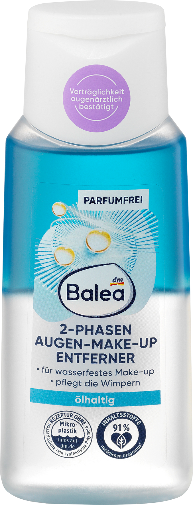 Двухфазное средство для снятия макияжа с глаз. Подходит для удаления водостойкого макияжа. Питает ресницы. Не содержит отдушек и микропластика. Легко и быстро удалять макияж? С двухфазным средством для снятия макияжа с глаз от Balea эта мечта становится реальностью! Это средство не только удаляет макияж, но и питает ресницы. Не содержит микропластика и отдушек, идеально подходит для удаления даже водостойкого макияжа, а также для тех, кто носит контактные линзы. Не содержит спирта, мягко и эффективно удаляет макияж, оставляя ощущение свежести и чистоты на лице! Код товара dm: 1622360 GTIN: 4066447234176