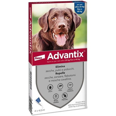 Advantix Spot On — пестицид Bayer для собак весом более 25 кг, предназначенный для профилактики и лечения блох и клещей.
