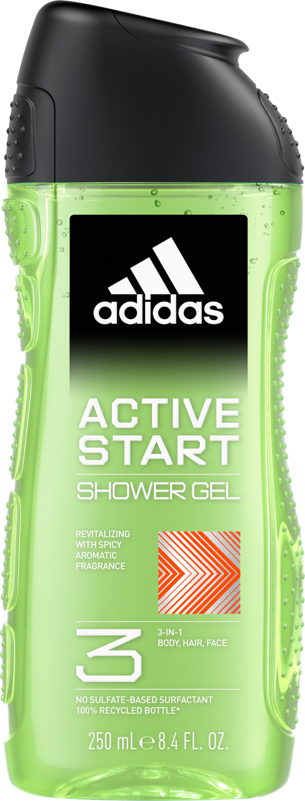 Гель для душа 3-в-1: для лица, тела и волос. С провитамином B5. Освежающее действие. Сохраняет pH-баланс кожи. Начните свой день с гелем для душа adidas Active Start! Формула 3-в-1, обогащенная провитамином B5, тщательно увлажняет и очищает тело, лицо и волосы, ухаживает за кожей, сохраняя ее pH-баланс. Подходит для всех типов кожи и волос. Гель образует мягкую пену, источает свежий и интенсивный аромат и одновременно оказывает тонизирующее и тонизирующее действие, позволяя вам начать день бодро и энергично. Код товара dm: 1739568. GTIN: 3616304240652