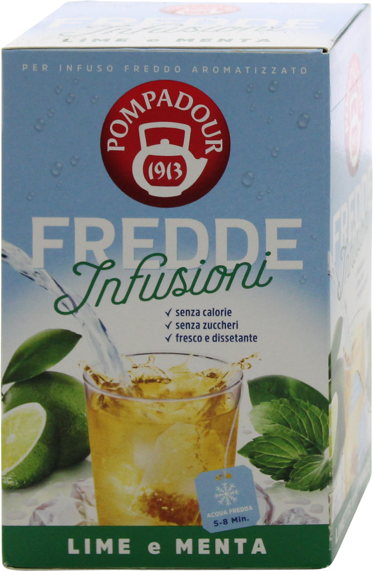 Холодный травяной чай. Настой в холодной воде. Свежий и освежающий. Без сахара. Без калорий. Хотите освежающего и вкусного напитка? Попробуйте холодный травяной чай Pompadour со вкусом лайма и мяты! Специально разработанный для приготовления в холодной воде, он готов к употреблению мгновенно, не содержит калорий и сахара. Свежесть мяты в сочетании с приятным вкусом лайма делают его классическим летним сочетанием, идеальным для всех вкусов, идеально подходящим для отдыха дома или в дороге, когда вам нужен легкий и освежающий перерыв! Код товара: 2152031. GTIN: 8002355442148