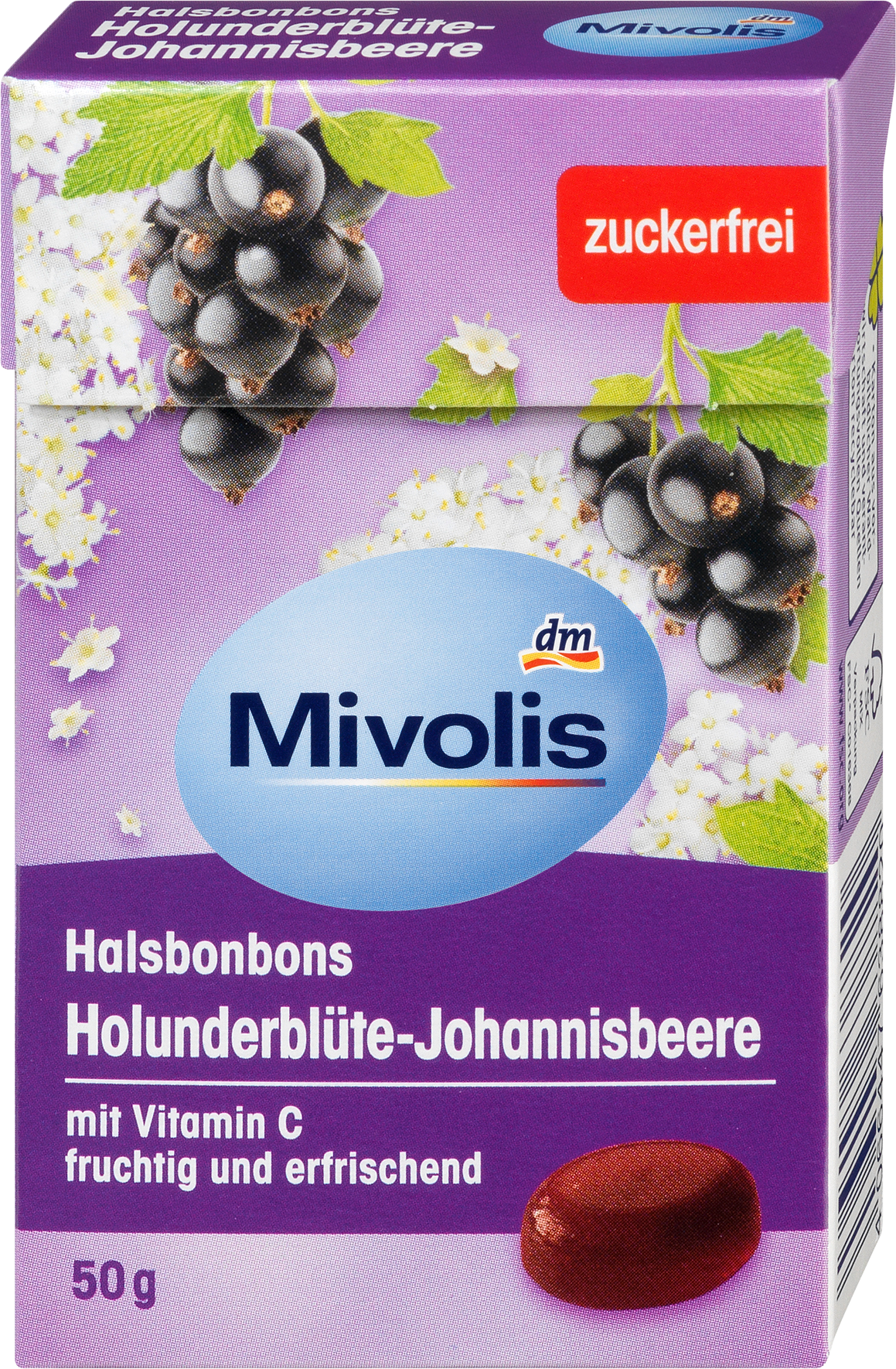 Свежий фруктовый вкус. С бузиной и смородиной. С витамином С. Без сахара. Формат 50 грамм. Конфеты Mivolis с бузиной и смородиной облегчают боль в горле благодаря свежему фруктовому вкусу. С витамином С и без сахара эти конфеты помогут уменьшить боль в любое время дня. Код товара: 1618869. GTIN: 4066447638820