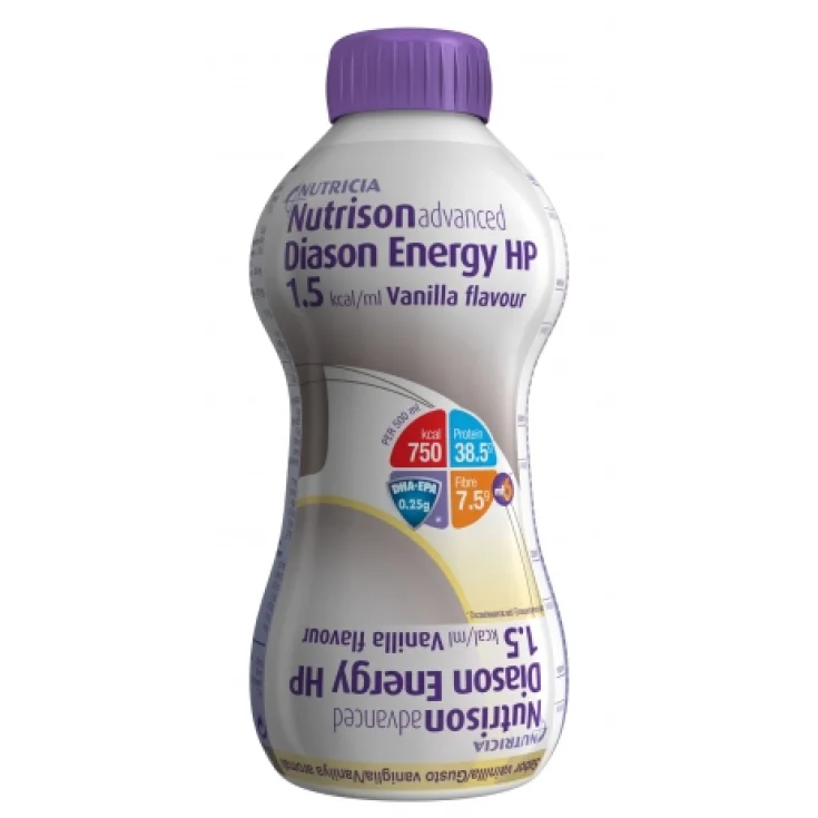 Полимерная смесь Nutrison Advanced Diason Energy Hp Nutricia Готовая к употреблению, высококалорийная (1,5 ккал/мл) и высокобелковая (21% ккал из белков), на основе казеина и соевых белков, с изомальтулозой и богатая мононенасыщенными жирами (60%). общего жира), с клетчаткой. Повышенное содержание хрома, витамина Е, витамина С и витамина В12 по сравнению со стандартной формулой. Вкус ванили Показания Энтеральное питание больных сахарным диабетом или пациентов со стресс-индуцированной гипергликемией, у которых повышенные потребности в питании, потребность в ограничении потребления жидкости, необходимость расширения временного окна, свободного от питания. Противопоказания и меры предосторожности Не применять детям в возрасте до 1 года, пациентам, страдающим галактоземией, и пациентам, которые должны соблюдать диету без клетчатки. Назначать с осторожностью детям в возрасте от 1 до 6 лет. Если они доступны, отдавайте предпочтение определенным продуктам для детского возраста. Дозировка Взрослые: 1500-2000 мл в день или другие дозы по назначению врача. Формат пластиковая бутылка 500 мл.