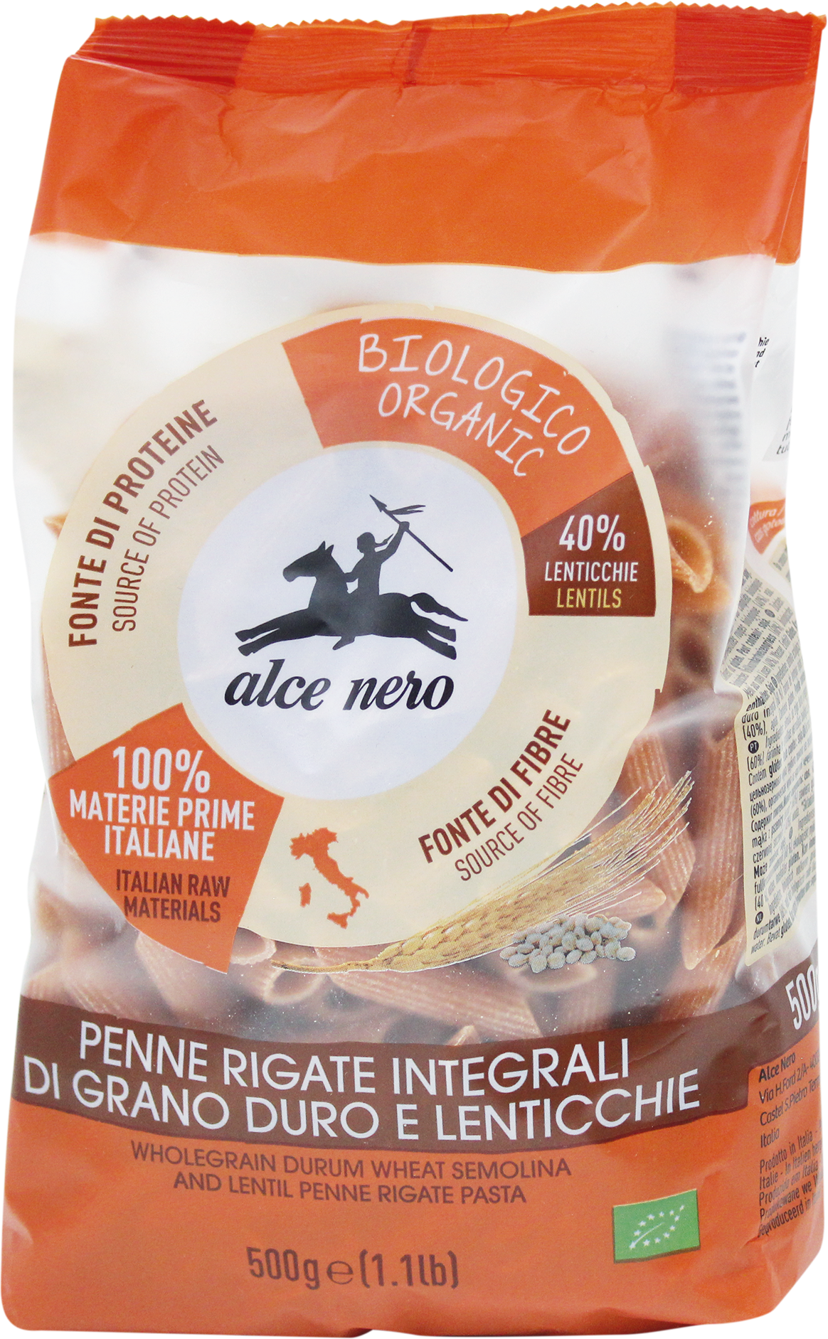 Пенне ригате из пшеницы и чечевицы, 500 г. Органическое производство, из твердых сортов пшеницы и чечевицы, 100% итальянское, с высоким содержанием белка. Вы любите пасту, но хотите попробовать что-то новенькое? Попробуйте пенне ригате из твердых сортов пшеницы и чечевицы от Alce Nero! Изготовленные только из сертифицированных органических ингредиентов, включая манную крупу из твердых сортов пшеницы и красную чечевицу, эти пенне ригате идеально подходят для вкусного и полезного обеда. Благодаря красной чечевице эта паста богата белком, что делает ее идеальной для тех, кто занимается спортом. Кроме того, это 100% итальянский продукт — попробуйте! Код товара dm: 2978085 GTIN: 8009004812918