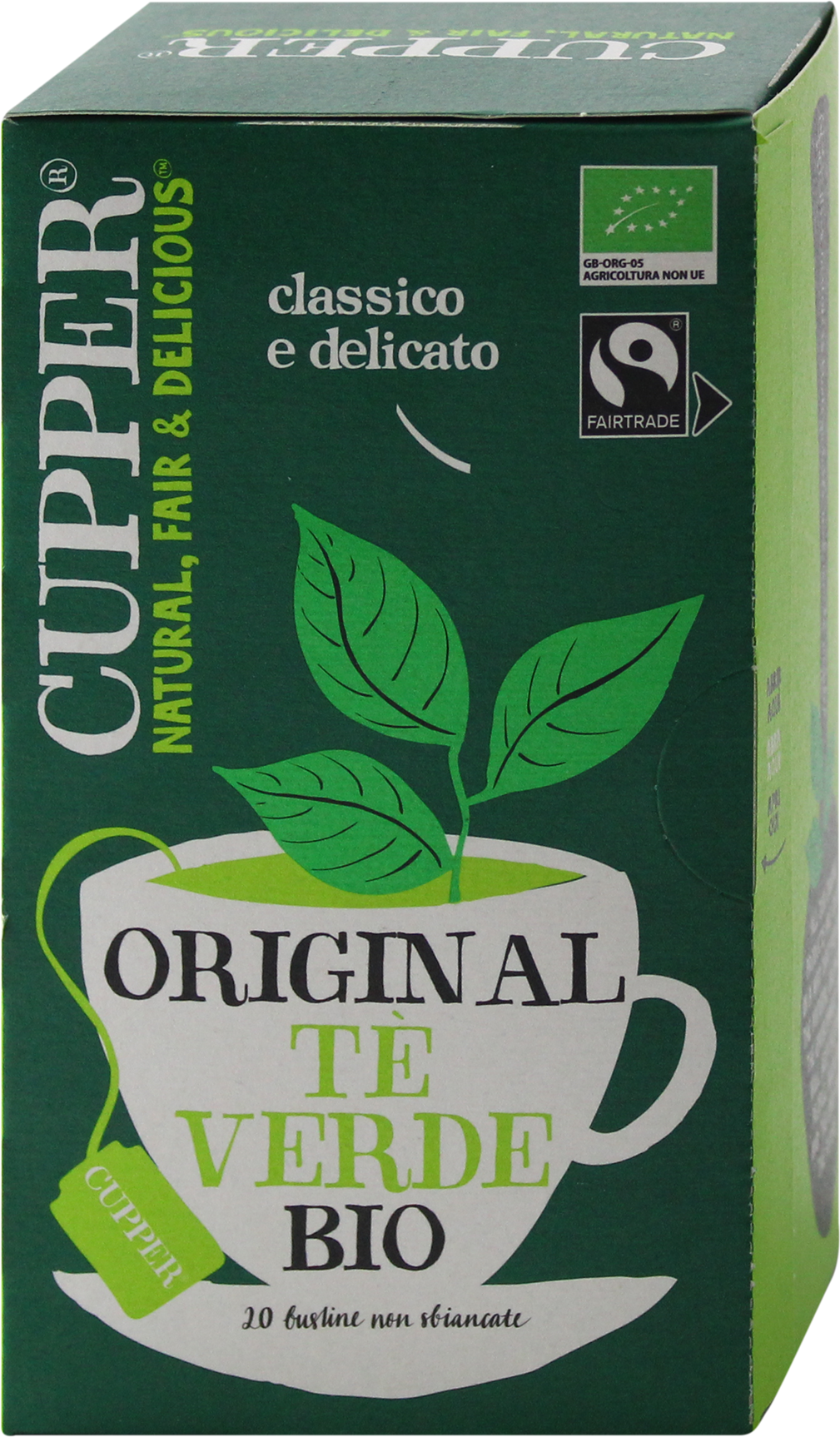 Оригинальный зеленый чай, 35 г (20 фильтров). Органически выращенный, сертифицирован по стандартам Fairtrade. Сладкий и нежный вкус. Идеально подходит для чаепития. Оригинальный зеленый чай CUPPER изготовлен из растений Camellia Sinensis, чайного растения, выращенного в Индии в рамках программы Fairtrade. Этот чай также очень важен для нашего организма; он помогает предотвратить сердечно-сосудистые заболевания, укрепляет кости и стимулирует метаболизм. Сладкий и нежный напиток, идеально подходящий для того, чтобы наслаждаться им в любое время дня и наслаждаться моментом чистого удовольствия! Код товара dm: 2161518 GTIN: 5021991942273