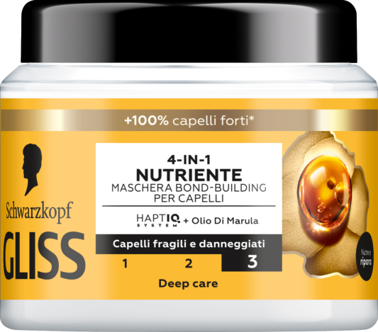 Интенсивное питание, мягкость и блеск, восстановление без утяжеления, 97% натуральных ингредиентов, 50% переработанного пластика. Новая формула питательной маски 4-в-1 от Gliss, обогащенная маслом марулы и системой HAPTIQ, восстанавливает внутренние микросвязи волос, укрепляя их структуру. Разработана для ломких, хрупких и поврежденных волос — секрет мягких и блестящих волос. Кроме того, она обладает легкой текстурой и обволакивающим ароматом для неповторимых ощущений во время принятия душа! Используйте эту маску вместе с шампунем, кондиционером и маслом-эликсиром из линии питательных масел для комплексного ухода за волосами! Код товара dm: 2169933 GTIN: 8015700167887