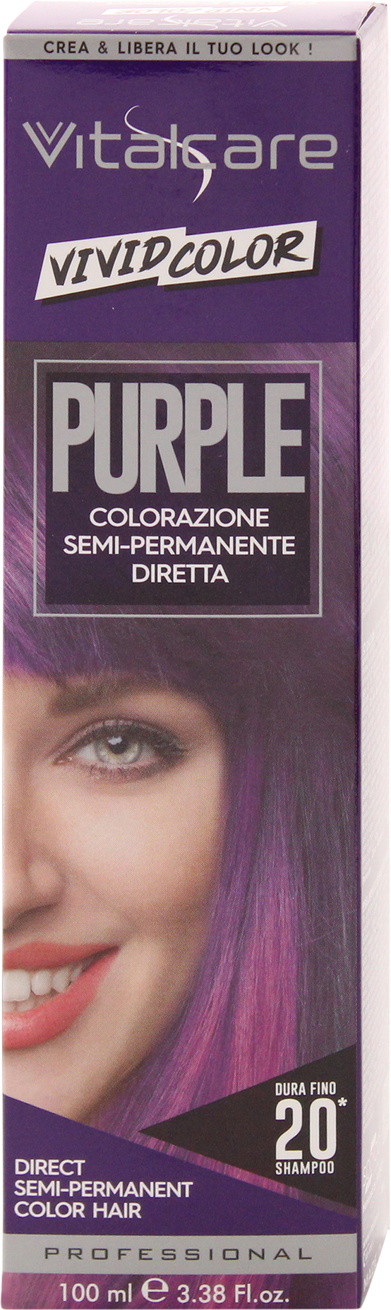 Держится до 20 применений шампуня. Фиолетовый цвет. Обеспечивает мягкость и увлажнение. Кремовая текстура. Не содержит аммиака и перекиси. Хотите добавить волосам немного цвета, но не привычный блонд, черный или коричневый? Тогда вам обязательно нужно попробовать полуперманентный прямой цвет Purple от Vitalcare Vivid Color! Оттенок фиолетового, что-то среднее между красным и синим, с нежной кремовой текстурой, сделает ваши волосы мягкими, увлажненными, блестящими и ароматными. Кроме того, в зависимости от цвета пигмента, пористости волос и исходного цвета, стойкость может достигать 20 применений шампуня. Создайте новый образ с цветами Vitalcare! Код товара dm: 2150653 GTIN: 8029241128696