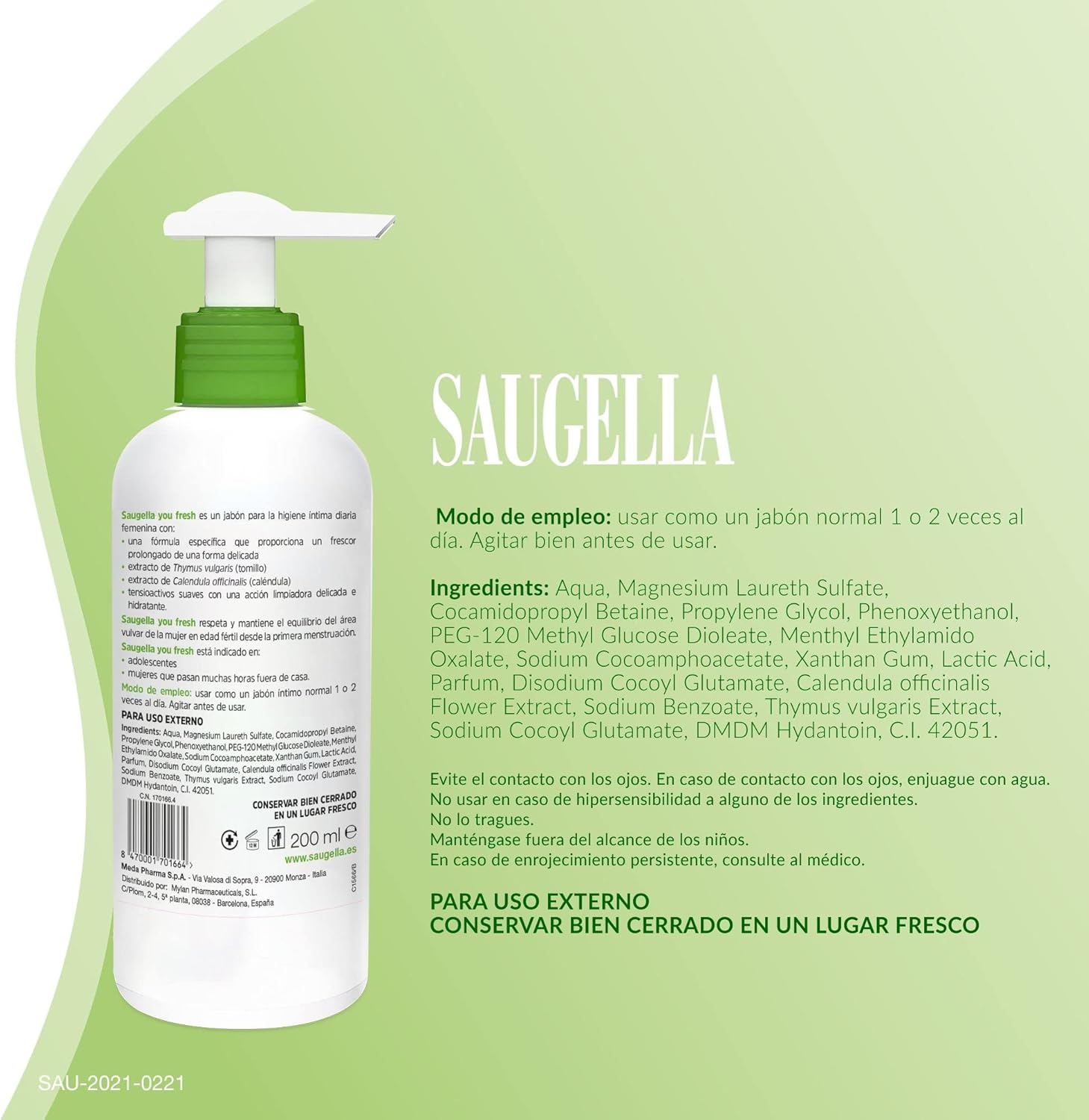 Интимное мыло Saugella You Fresh – ежедневное мыло для интимной гигиены для женщин, стремящихся к ощущению свежести – pH 5, 200 мл.