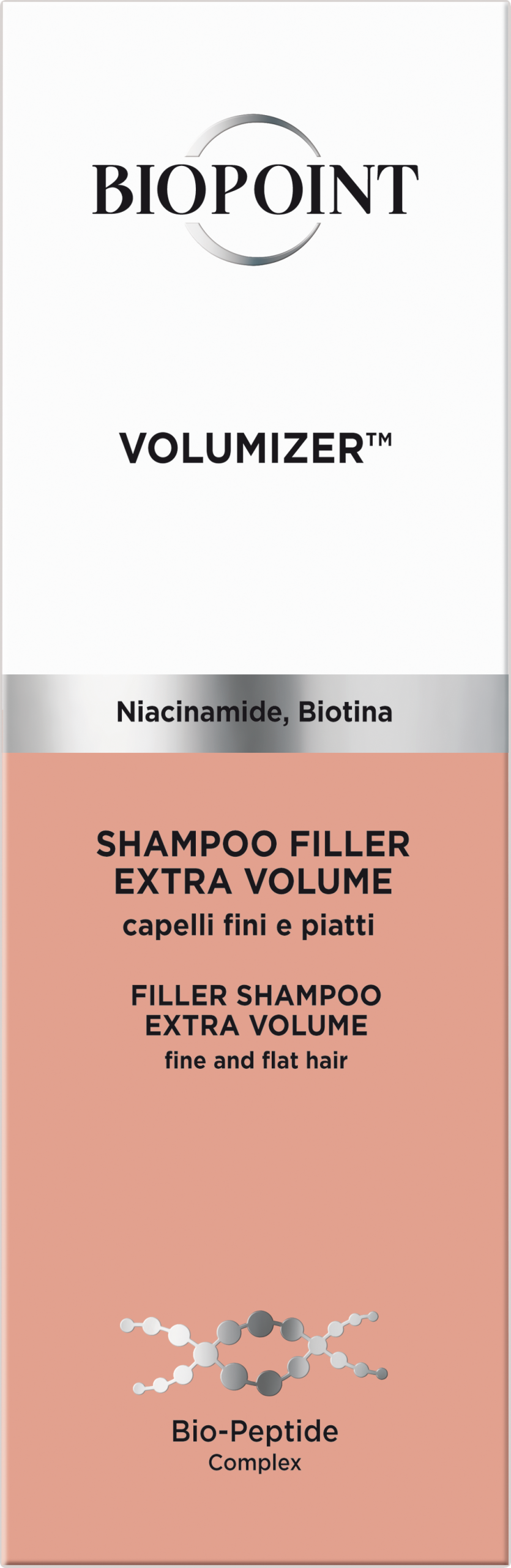 Для тонких, безжизненных волос. Придает волосам объем и пышность. Формула обогащена ниацинамидом и биотином. Обеспечивает блеск и мягкость. Бережно очищает кожу головы. Верните жизнь своим тонким, безжизненным волосам с помощью шампуня Biopoint Extra Volume Filler. Он бережно очищает кожу головы, а инновационная формула с биопептидным комплексом проникает в волокна волос, придавая им объем и пышность у корней и кончиков. Обогащенный ниацинамидом и биотином, он восстанавливает гидролипидный баланс, поддерживая здоровье волос и кожи головы. После использования ваши волосы станут объемными, бархатистыми и блестящими, окутанные фруктовым букетом жасмина, туберозы и гваякового дерева. Дерматологически протестировано! Код товара dm: 3043559 GTIN: 8050507530908