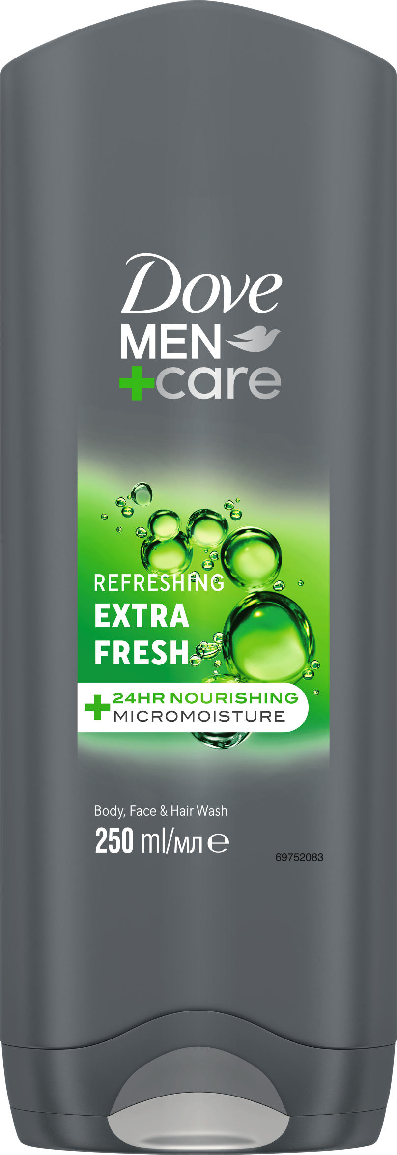 Откройте для себя всю мощь технологии MicroMoisture, которая увлажняет кожу, делая ее здоровой и защищенной от сухости до 24 часов! Формула шампуня для душа Dove Men+Care Extra Fresh очень эффективна, легко смывается, оставляя кожу в состоянии полного комфорта и свежести. Этот дерматологически протестированный шампунь для душа оставит ваше тело чистым и с невероятно свежим ароматом, помогая вашей коже оставаться здоровой, увлажненной и защищенной от раздражения и сухости.