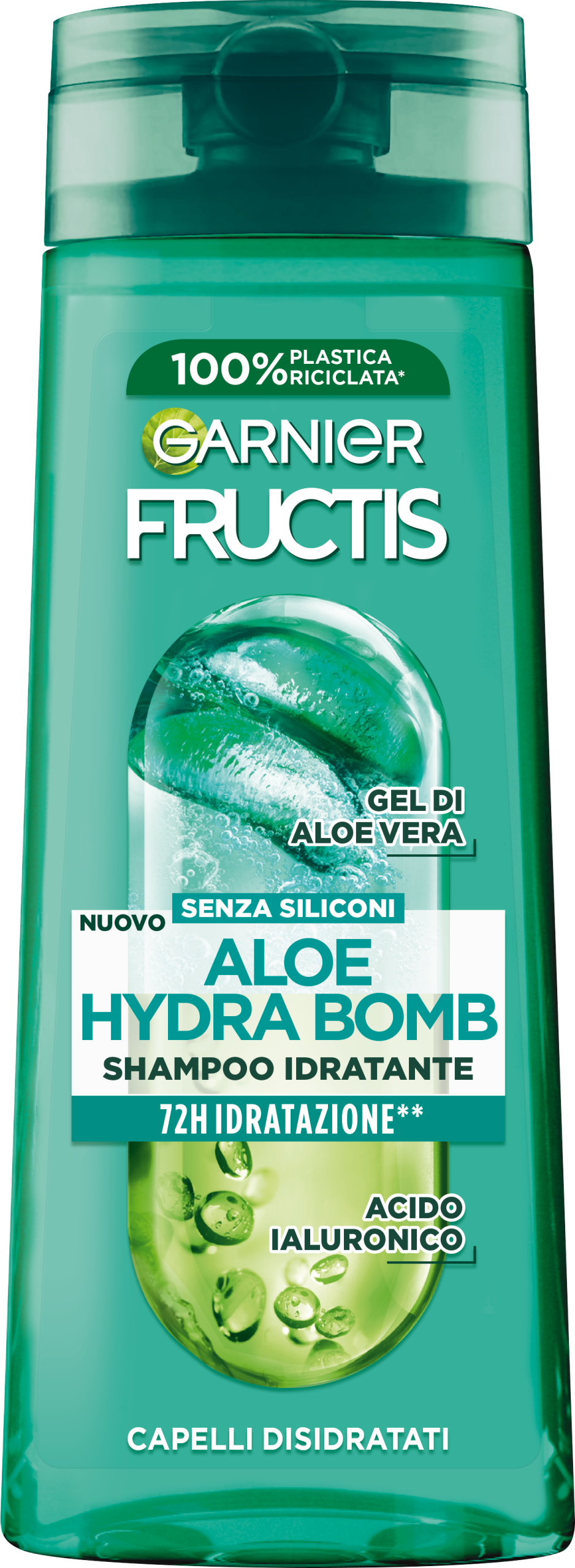 Увлажняющий шампунь. Идеально подходит для обезвоженных волос. С алоэ вера и гиалуроновой кислотой. Распутывает волосы, не утяжеляя их. Укрепляет волосы и повышает их мягкость. Шампунь Garnier Fructis Aloe Hydra Bomb — это увлажняющий шампунь, идеально подходящий для обезвоженных волос. Формула обогащена гелем алоэ вера, который интенсивно увлажняет волокна волос и распутывает их, не утяжеляя. Он также обогащен гиалуроновой кислотой, которая интенсивно увлажняет, укрепляет волосы и повышает их мягкость. Код товара dm: 2166662 GTIN: 3600542543439
