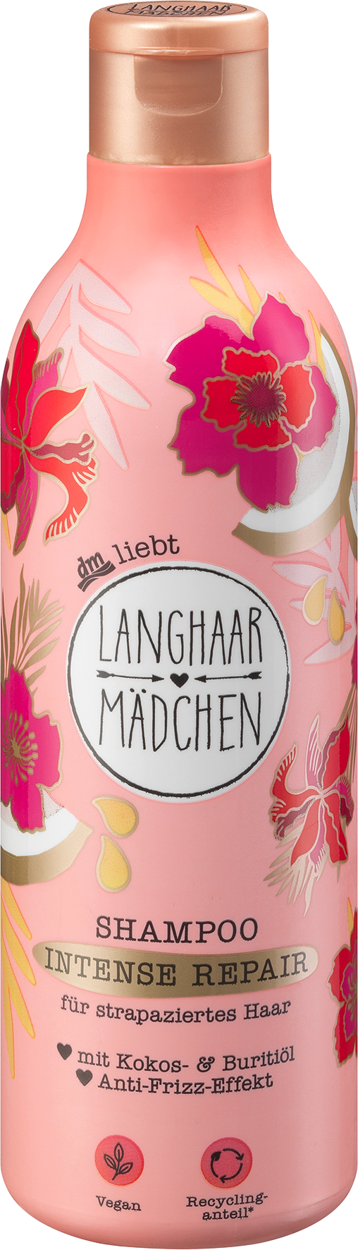С натуральным кокосовым и буритовым маслом. Интенсивный уход. Эффект против пушистости. Веганский продукт. Шампунь Langhaarmädchen Intense Repair делает волосы мягкими и заметно более крепкими. Профессиональная формула с пантенолом и комплексом аминокислот оказывает эффект против пушистости и ухаживает за волосами. Для здоровых, напитанных и мягких волос. Код товара dm: 1539789. GTIN: 4058172920684