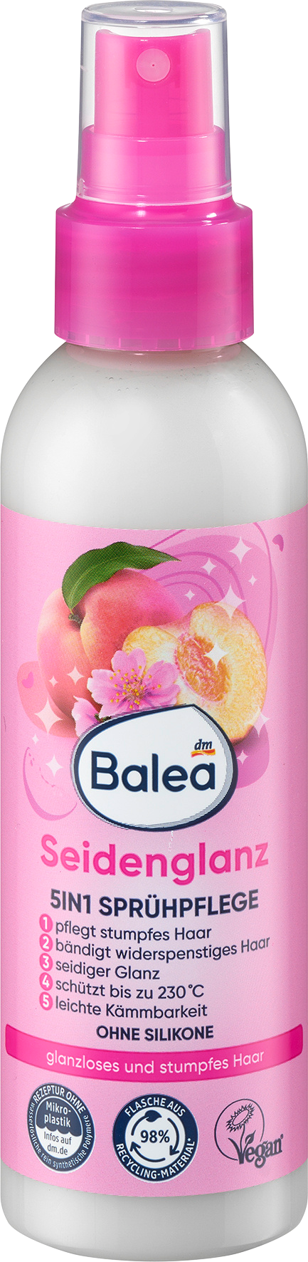 Лак для волос. Для тусклых и поврежденных волос. Без силикона. Веганский продукт. Лак для волос Balea Shine ухаживает за тусклыми и поврежденными волосами, придавая им блеск и мягкость. Формула разработана для того, чтобы укротить непослушные волосы, облегчая расчесывание от корней до кончиков. Кроме того, спрей защищает волосы от воздействия высоких температур до 230°C. Персиковый аромат порадует ваши чувства! Дерматологически протестировано. Без силикона. Ассортимент средств для волос Balea настолько широк, что найдется решение для любых потребностей. Код товара dm: 1679731 GTIN: 4066447237467