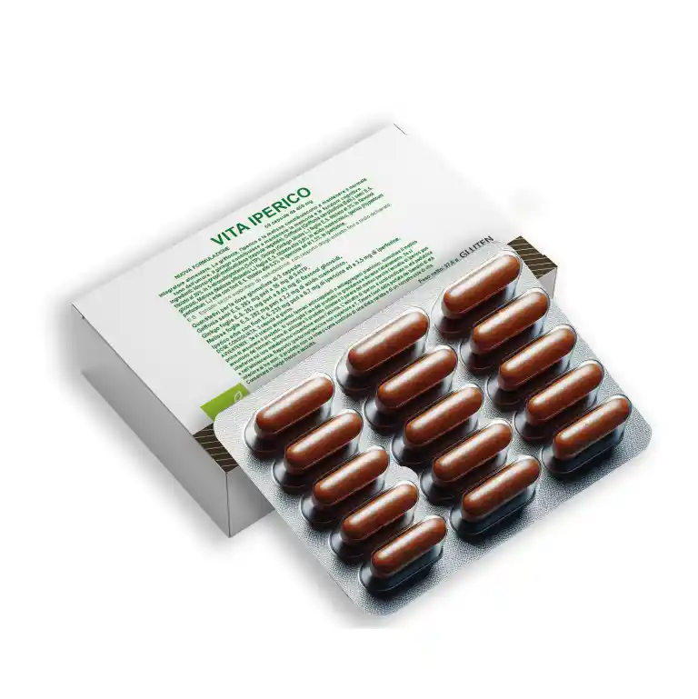СоставИнгредиенты: Гидроксипропилметилцеллюлоза (растительная капсула), семена Грифонии (Griffonia simplicifolia Baill.) E.S. титрованный до 20% 5-гидрокситриптофана (5-HTP), гинкго (Ginkgo biloba L.) оставляет E.S. титрованные до 3% флавонолгликозидов, листья мелиссы (Melissa officinalis L.) E.S. титрованное до 0,8% в розмариновой кислоте, цветки травы зверобоя продырявленного (Hypericum perforatum L.) E.S. титровали до 0,3% в гиперицине и 1,5% в гиперфоринах. E.S.: Сухой экстракт, поддерживаемый мальтодекстринами, с соотношением сухого растения/экстракта в соответствии с заявленным названием. Среднее количество на суточную дозу Среднее количество на суточную дозу 3 капсулы: семена гриффонии E.S. 283 мг эквивалентно 56 мг 5-HTP | Гинкго оставляет E.S. 282 мг равно 8 | 45 мг флавонолгликозидов | Мелисса покидает E.S. 282 мг равно 2 | 2 мг розмариновой кислоты | Цветущая трава зверобоя E.S. 233 мг равно 0 | 7 мг гиперицина и 3 | 5 мг гиперфоринов.