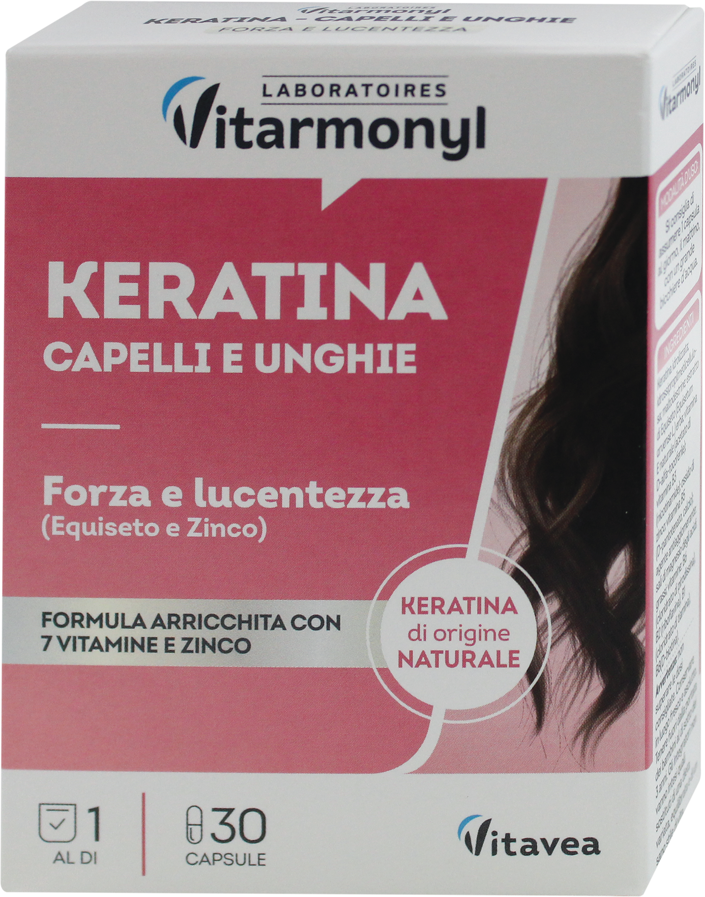 Добавка с кератином, 12,15 г (30 шт.) С кератином и экстрактом хвоща. Обогащена 7 витаминами. Для здоровья волос и ногтей. Придает силу и блеск. Поврежденные, ломкие волосы и хрупкие ногти? С добавкой с кератином от Vitarmonyl Optima Beauty эта проблема исчезнет! На основе натурального кератина, экстракта хвоща, витаминов, цинка и минералов эта добавка способствует здоровью волос и ногтей. Кератин придает нашим волосам эластичность, силу и блеск, а также является основным компонентом наших ногтей. Для вашего ритуала оздоровления! Код товара dm: 2164444 GTIN: 3286010080882