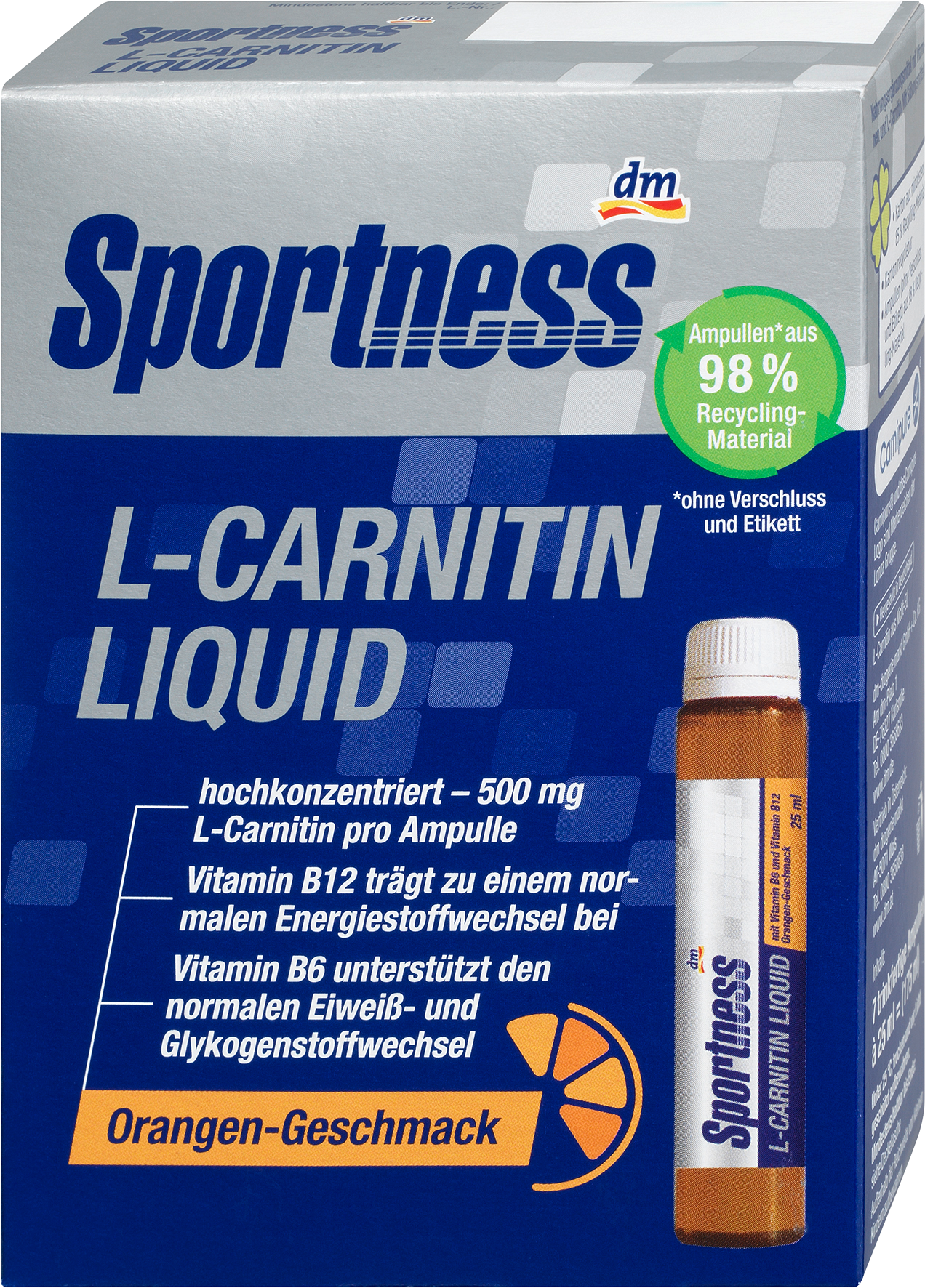 7 флаконов по 25 мл. С витаминами B12 и B6. Идеально подходит до, во время и после физических нагрузок. Флаконы готовы к употреблению. Апельсиновый вкус. Эти ампулы со вкусом апельсина от Sportness содержат высокую концентрацию L-карнитина. Благодаря жидкой форме их легко принимать в любое время. Содержащийся в них L-карнитин способствует энергетическим процессам в организме. Кроме того, добавка обогащена витаминами B12 и B6, которые могут поддерживать нормальный энергетический обмен и уменьшать чувство усталости и утомления. Ампулы готовы к употреблению, что делает их практичным решением для тех, кто ищет поддержку для своего активного образа жизни. Код товара dm: 1623124 GTIN: 4058172969546